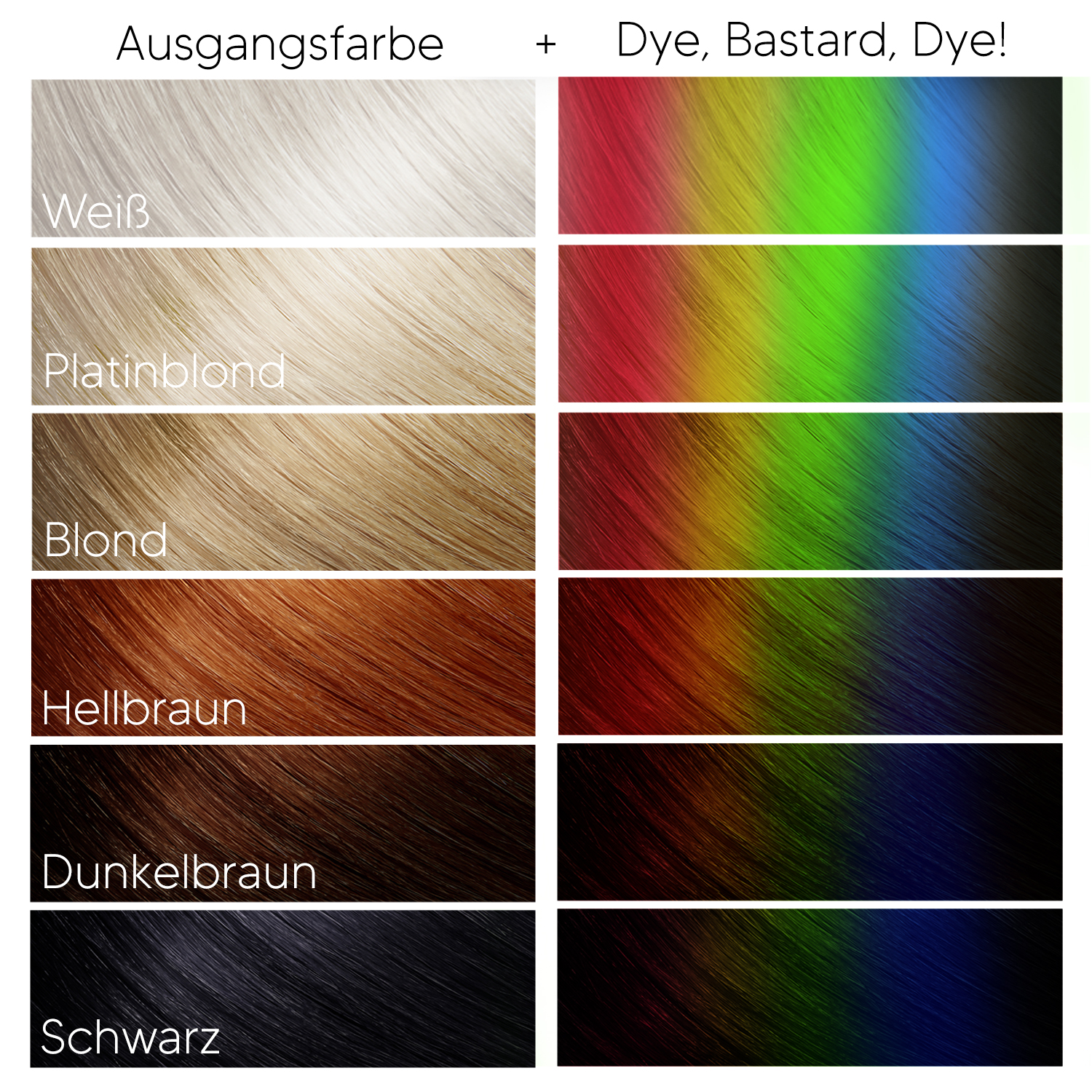 1 x Blackout (150 ml), 1 x Desaster Blue (150 ml), 1 x Blood Berry (150 ml), 1 x Yippieh Ya Yellow (150 ml), 1 x Grr Grr Green (150 ml), 1 x Matrix Color Base (150 ml)