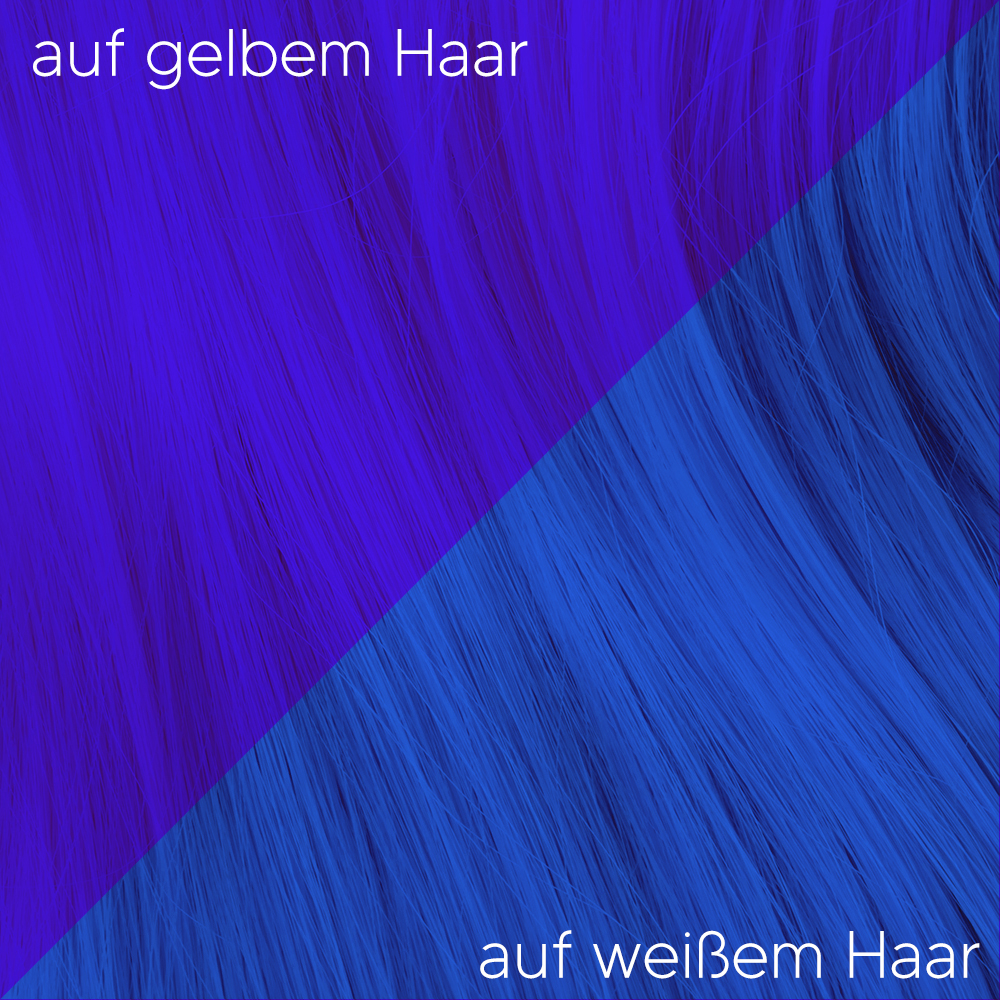 „Fuck you, I’m magic!“ ist ein Blauton mit leichtem Lilaanteil. Auf sehr hell blondierten Haaren kommt der Blauanteil besonders zur Geltung, bei gelbstichigen Haaren geht das Ergebnis eher ins Violette.