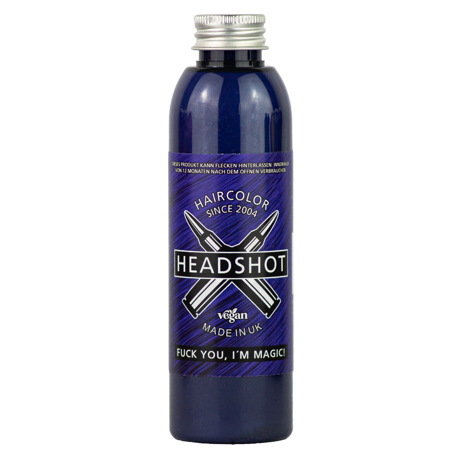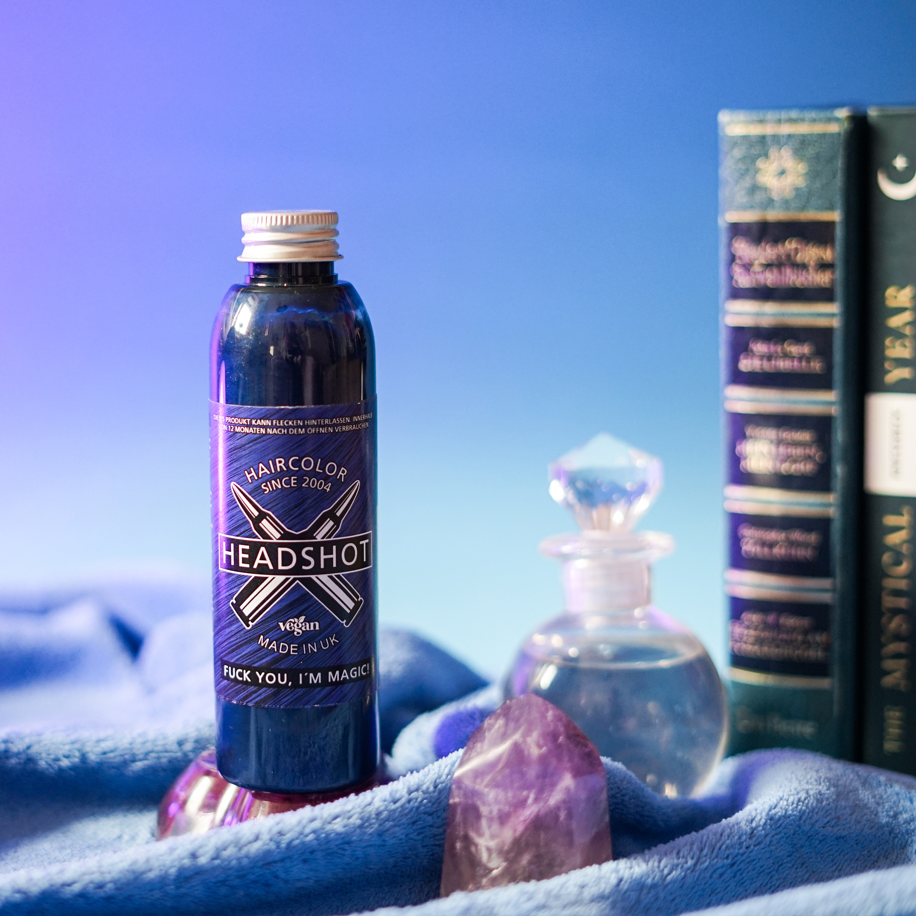 Was sollen wir sagen, nach dem 5. Glühwein war die Idee von „Fuck you! I‘m magic!“ geboren. Bei dieser magischen Haarfarbe handelt es sich um einen wunderschönen Blauton mit violetten Nuancen. Tatsächlich ist diese extrem ungewöhnliche Headshot Haarfarbe ein echtes Wunder (Danke Sammy!). Wenn du diese coole Haarfarbe auf hellblondierten Haaren nutzt, werden deine Haare Blau, bei weniger hellen Haaren geht die magic Haarfarbe eher ins Violette. Wie du deine Haare perfekt blondierst findest du hier... Ähm, Sammy, der Link! Wo ist der Link zu der Blondieranleitung? Hör bitte auf mit Vanillekipferln zu werfen!!! Danke! Ach, kuck mal, da kommt ja der Link :
