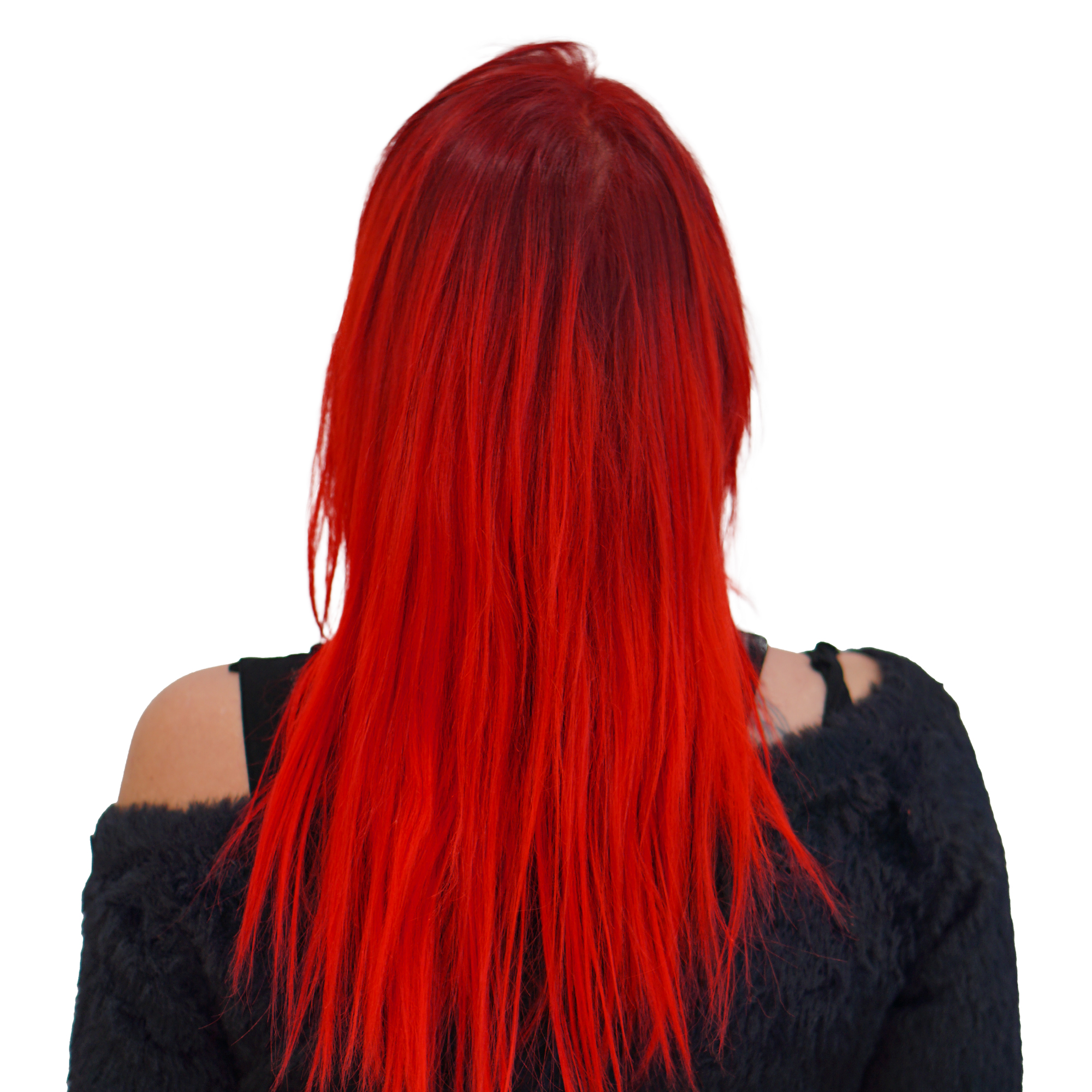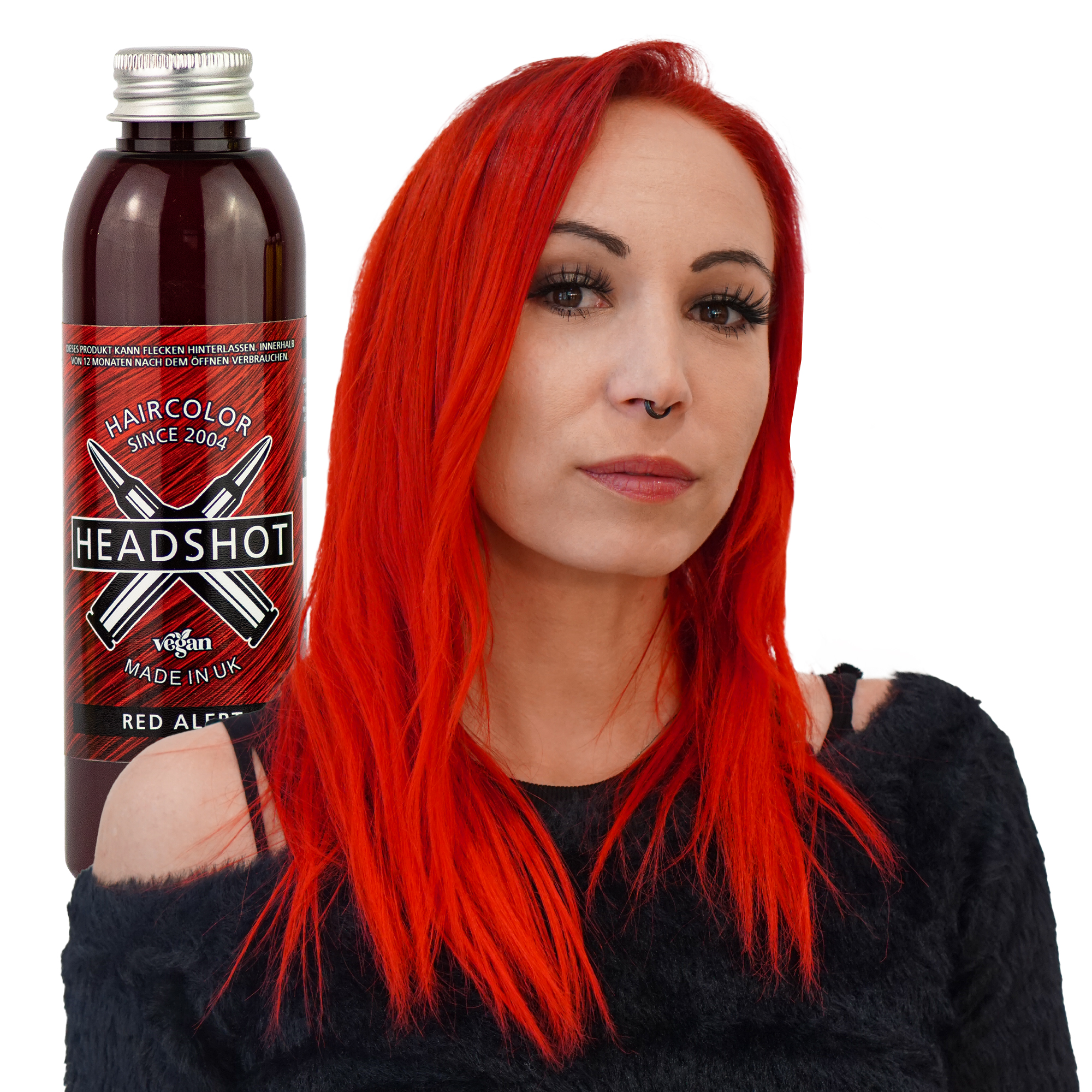 Red Alert ist ein helleres orangestichiges Rot. Die Haare müssen nicht so hell gebleicht werden, wie für andere Farben. Allerdings wird das Ergebnis dann auch gedämpfter und weniger leuchtend.
