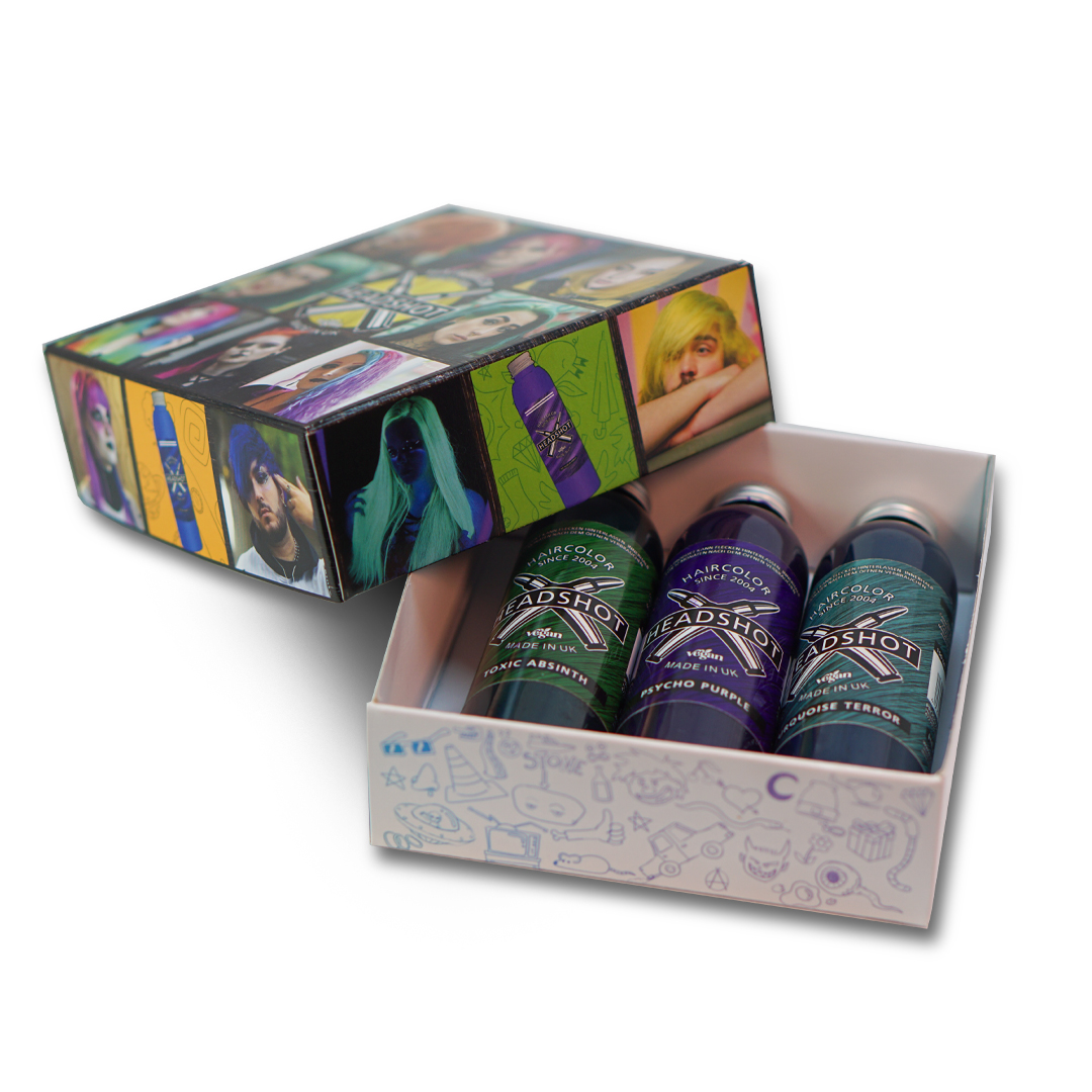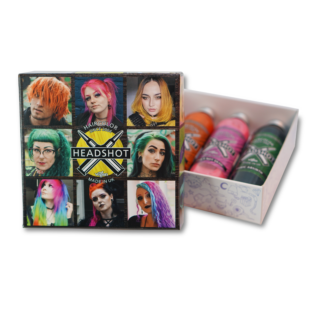 Mit diesem Set bekommst du 3 ultimative Headshot Haarfarben deiner Wahl. Such dir einfach deine 3 Lieblingshaarfarben aus! Wähle unten deine 3 Wunschfarben aus, es können drei verschiedene oder auch drei gleiche Headshot Haarfarben sein.