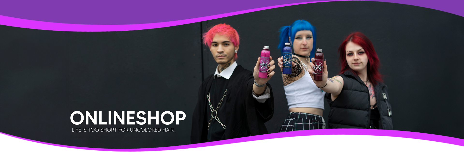 Psycho Purple ist ein Blau-Lila. Auf sehr hell blondierten Haaren wird das Ergebnis eher blau, bei gelbstichigen Haaren geht das Ergebnis mehr ins Lila. Mit 150 ml Inhalt ist in den Headshot Flaschen deutlich mehr Farbe enthalten als bei anderen Marken. Die Farbe ist vegan, tierversuchsfrei und wird in Europa hergestellt. Für ein optimales Farbergebnis empfehlen wir folgende Vorgehensweise:Blondiere dein Haar. Warte 48 Stunden und zwei Haarwäschen.Feuchte die Haare an und lasse sie ca. 10 Minuten im Handtuch trocknen. Schütze die umliegende Haut mit Babyöl, Vaseline oder Creme. Achtung: Tönung kann Haut und Textilien verfärben. Die Haare Strähne für Strähne satt bestreichen. Benutze Einmalhandschuhe und einen Haarfärbepinsel, beides gibt es in der Drogerie. 30 Minuten oder länger einwirken lassen. Wärme verbessert das Ergebnis. Benutze vor dem Färben keine Pflegeprodukte wie z.B. silikonhaltige Shampoos, sonst wird möglicherweise die Farbe schlechter angenommen. Du kannst die Farben einer Marke auch mischen. Haartönungen sind nicht für Augenbrauen oder Wimpern gedacht, Augenkontakt unbedingt vermeiden! Die Tönungen waschen sich nach und nach wieder aus. Verfärbungen auf Textilien auch nach dem Tönen möglich! Die Farbergebnisse können varieren. Wir empfehlen daher, an einer geeigneten Haarsträhne einen Test durchzuführen, bevor du die Farbe auf das gesamte Haar aufträgst.